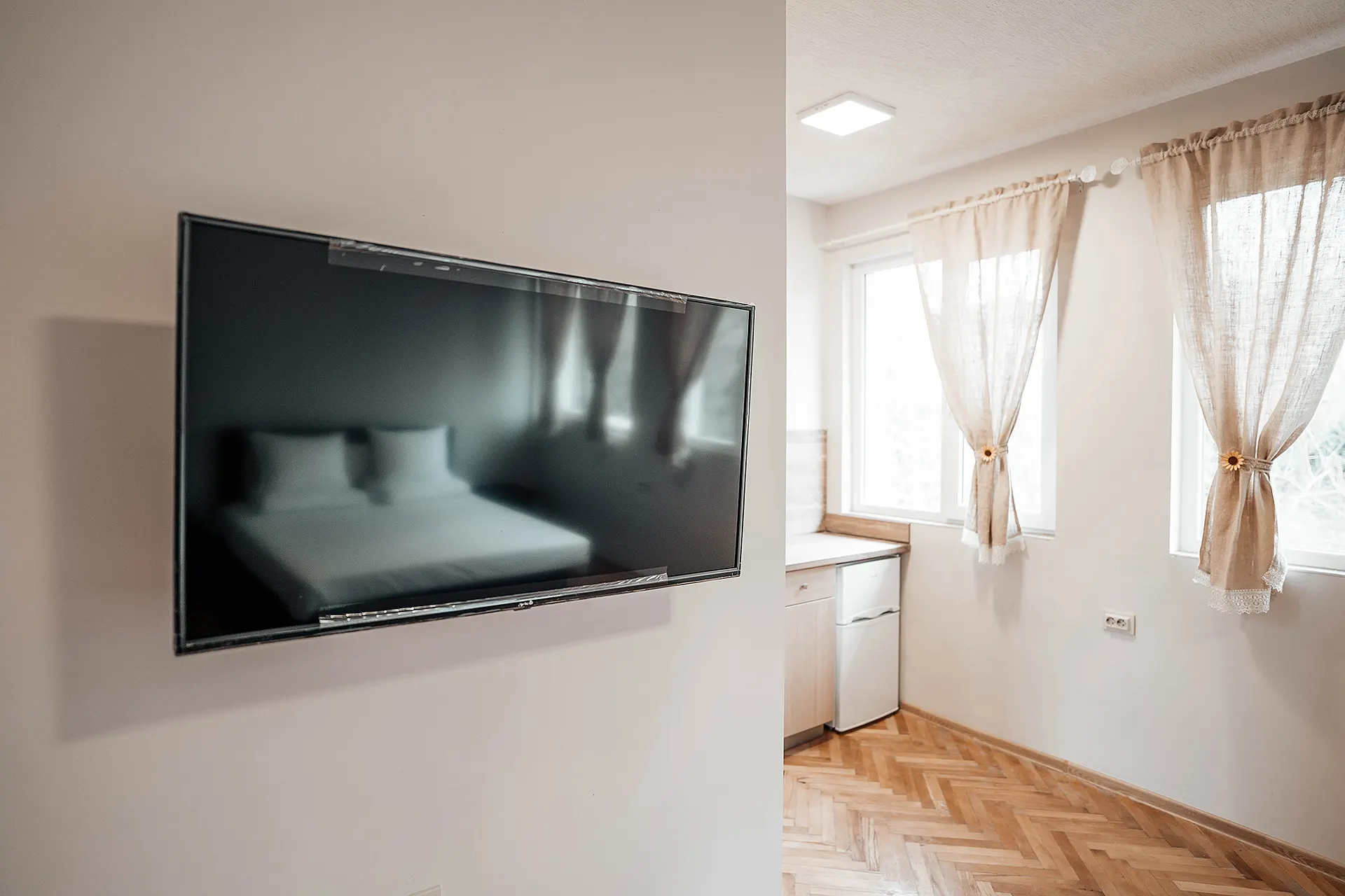 Съвременен телевизор с кабелна телевизия и разнообразни канали.